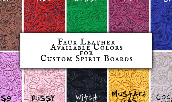 Click on the images below to review the available options for your spirit board. Remember to write down the choices you want, so that you can enter it into the Custom Spirit Board order form later.