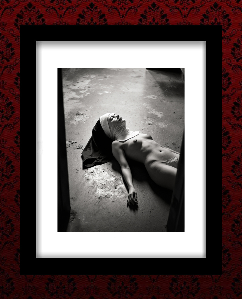 The sister devoted her last breath, not to the devine master but to the pleasures of deprivation. Now she lay flat, unclad and ready to be receieved as sinner and saint.
