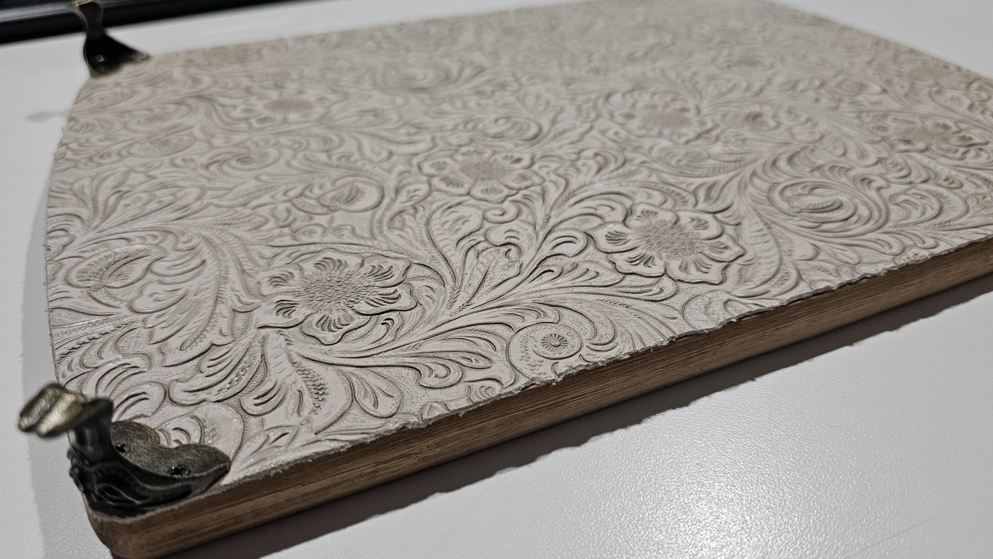 Complete with precision laser etched custom graphics, faux leather bottom cover, our signature claw feet and provincial polyurethane stain, you will elevate your spirit communication game.