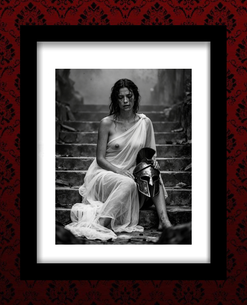 As her husband Leonidas met his fate at the hot gates of Thermopylae, the Spartan Queen Gorgo, walked amoung the lessor men of the city. Vying for their allegiance and hand. Some say she performed favor and danced in flesh to seal her seat. No man was immune to Gorgo's temptation. Even the Oracle surrender.