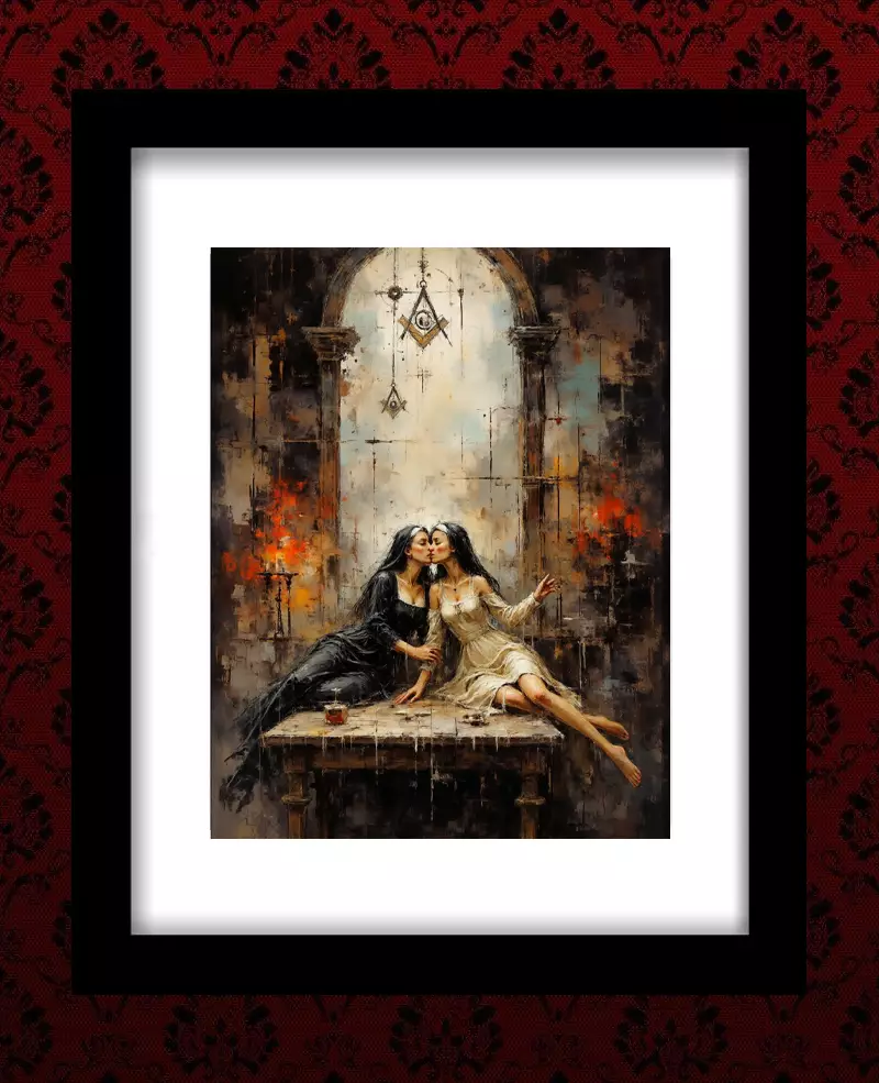 As her eyes feast upon the flesh of the river bathing sisters, before her exists a choice. Another drink. Another look. A carefully placed hand below. Or her vows spoken. What would you choose?